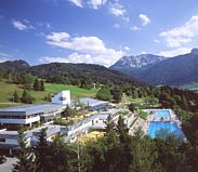 | Alpenbad Kurzinfo: Das Alpenbad Pfronten ist ganzjährig geöffnet und bietet neben dem Hallenbad und Heißwasserbecken im Sommer zusätzlich beheizte Freibäder mit zahlreichen Attraktionen im Nichtschwimmer- und (Klein-) Kinderbereich. Beschreibung: Das Alpenbad am Meilinger Hang in Pfronten hat seinen Besuchern auf dem 25.000m² großen Areal eine Reihe von Attraktionen zu bieten. Im Hallenbadbereich stehen neben einem Schwimmerbecken (25m Länge) ein Wintergarten mit Erholungszone und großzügigen Liegeflächen, eine Eltern-Kind-Zone mit Wasserlandschaft und Spieltieren, eine Felsengrotte mit Kaltwasserfall und eine Bikinibar mit Sonnenterrasse zur Verfügung. Die 73m-Großwasserrutsche ist ganzjährig geöffnet. Der Freibadebereich bietet ein Heißwasserbecken mit Massagedüsen, ein 50m langes Schwimmerbecken, ein großes Nichtschwimmerbecken mit Felsenrutsche und Wildwasserkanal, einen Eltern-Kind-Bereich mit verschiedenen Spielattraktionen, sowie eine großzügige Liegewiese. |
