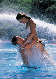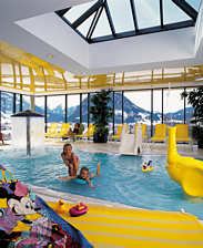Attraktionen: Großer Eltern-Kind-Bereich, Heißwasserbecken im Freien, 73 m-Großwasserrutsche. Spezial-Angebote: Sauna- und Fitnessinsel, Dampfsaunen, Sonnenstudio; Restaurant, Bikini-Bar, Kegelbahnen. Für Kinder: Großer Eltern-Kind-Bereich in der Halle und im Freien. |